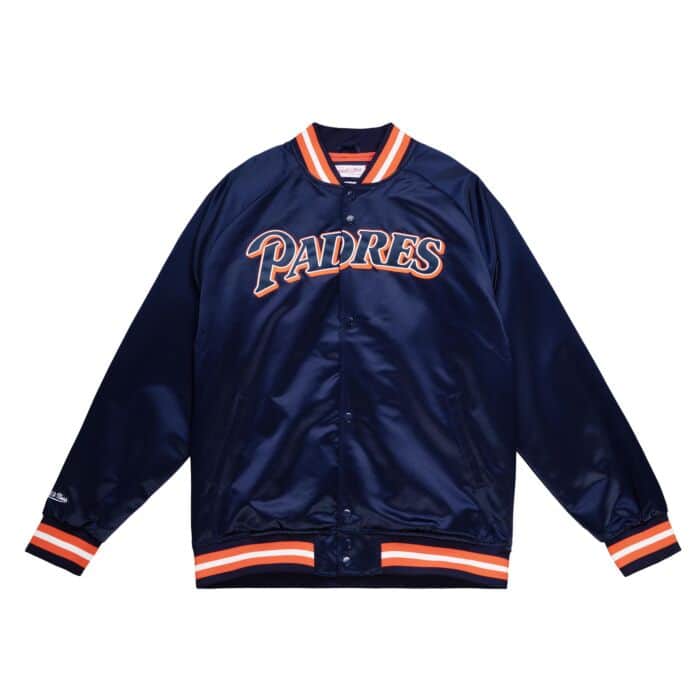 Take your San Diego Padres gear to an elite level with this Lightweight Satin Raglan Full-Snap Jacket. Its outstanding construction and embroidered fabric applique provide a vintage look and feel. This throwback jacket is the perfect option for layering with your favorite San Diego Padres jersey or tee on game day.