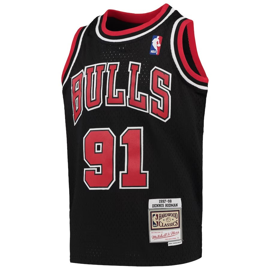 Chicago Bulls Youth Mitchell & Ness Dennis Rodman #91 Black 1997-98 Hardwood Classics Swingman Jersey