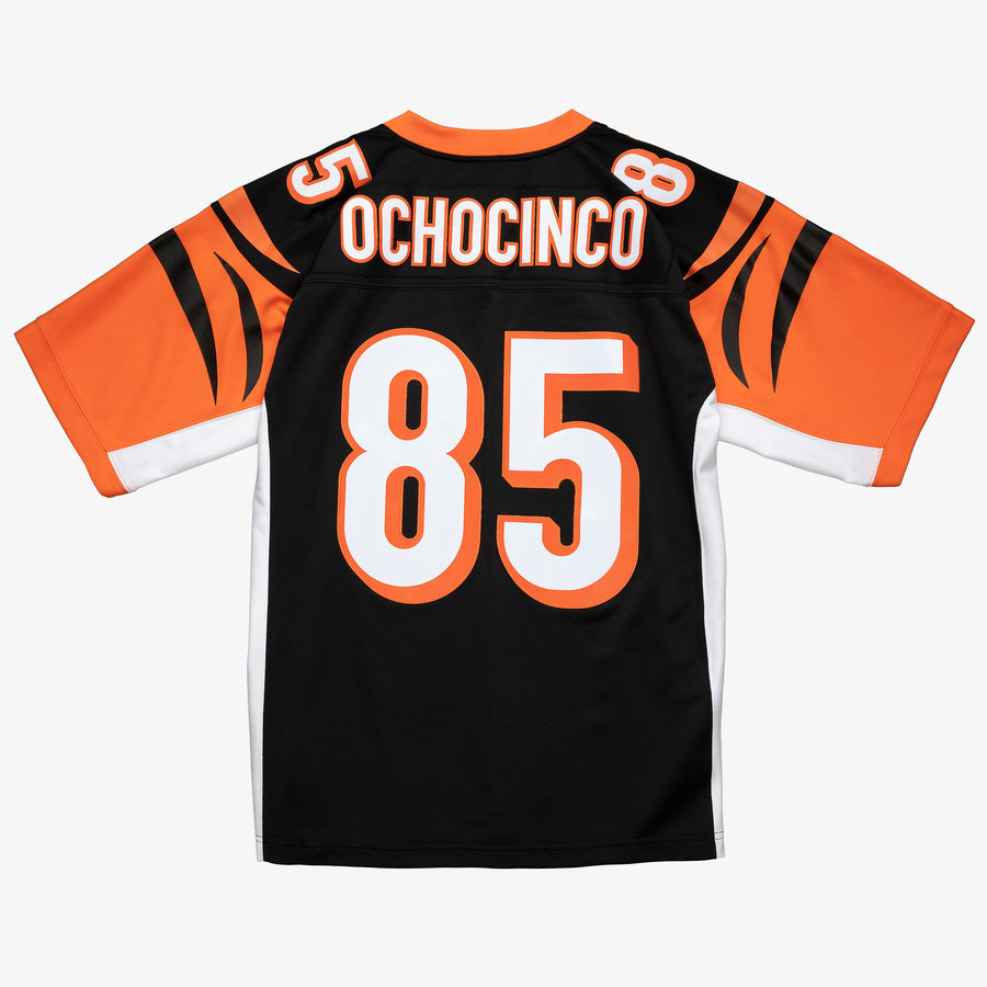 Pay homage to one of the greatest players in Cincinnati Bengals history with this Chad Ochocinco 2009 Retired Player Replica Jersey from Mitchell & Ness. The breathable mesh bodice keeps you cool and comfortable, while the droptail hem with side splits provides extra coverage and ease of movement, making this jersey ideal for game day or everyday wear. The stitched tackle twill applique and screen print graphics showcase Chad Ochocinco's iconic number and team details, giving you an authentic look that pays tribute to one of the NFL's all-time greats.