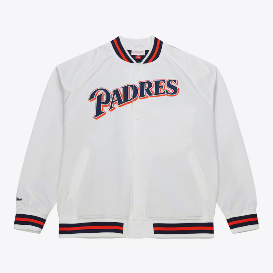 Take your San Diego Padres gear to an elite level with this Lightweight Satin Raglan Full-Snap Jacket. Its outstanding construction and embroidered fabric applique provide a vintage look and feel. This throwback jacket is the perfect option for layering with your favorite San Diego Padres jersey or tee on game day.